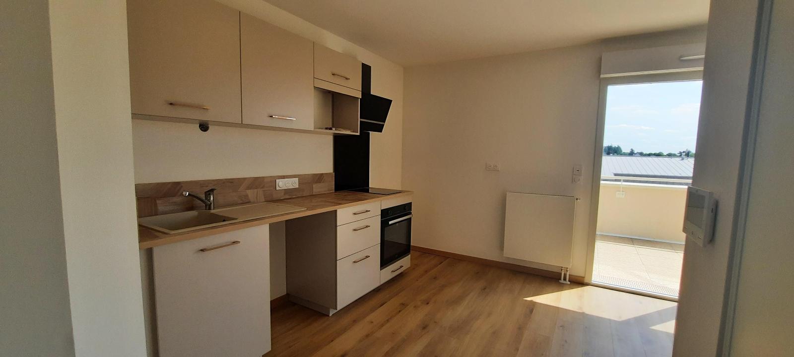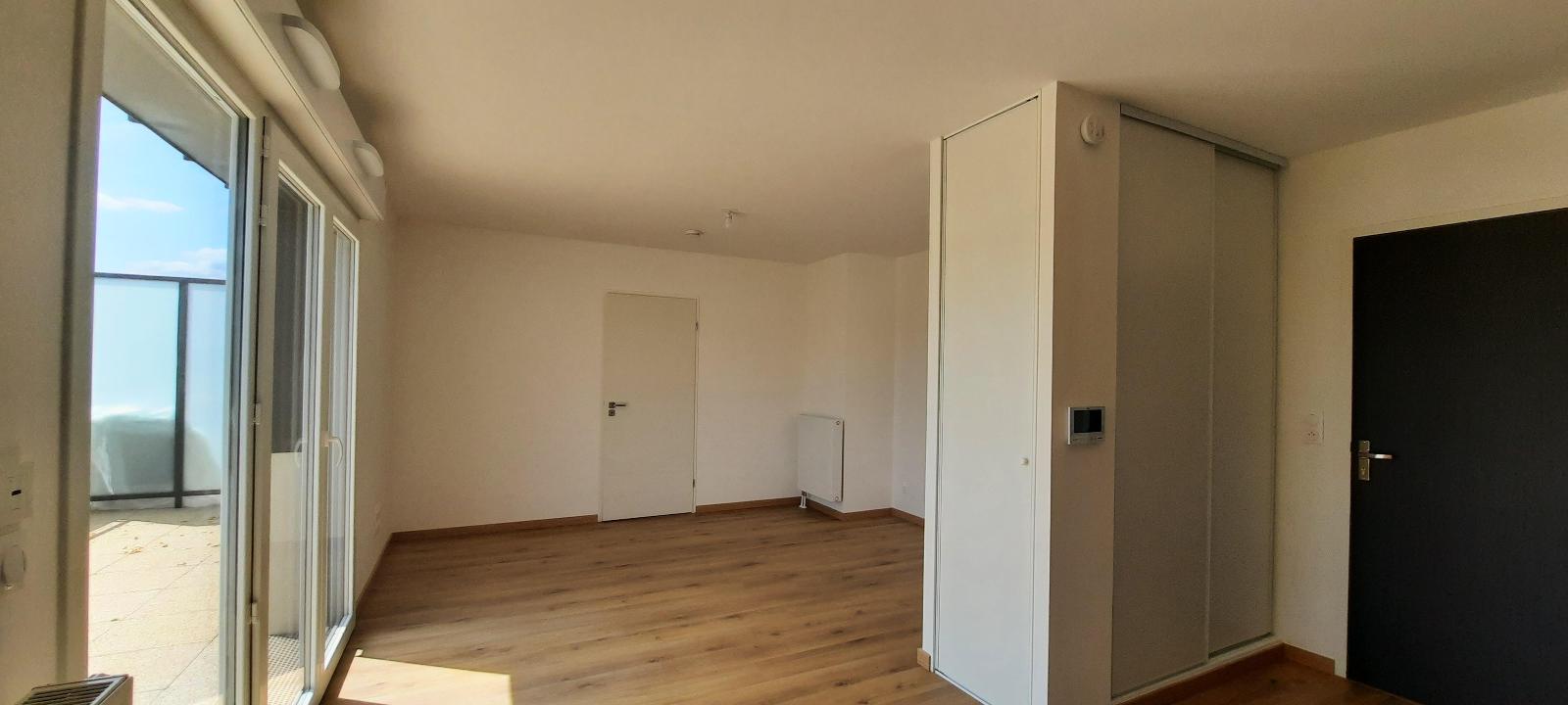 BONCHAMP LES LAVAL - Bel appartement récent de 32,27 m² comprenant entrée sur pièce de vie avec espace cuisine aménagée et équipée (plaque et hotte) et accès à un grand balcon, une salle de douches avec wc. Parking en sous-sol.