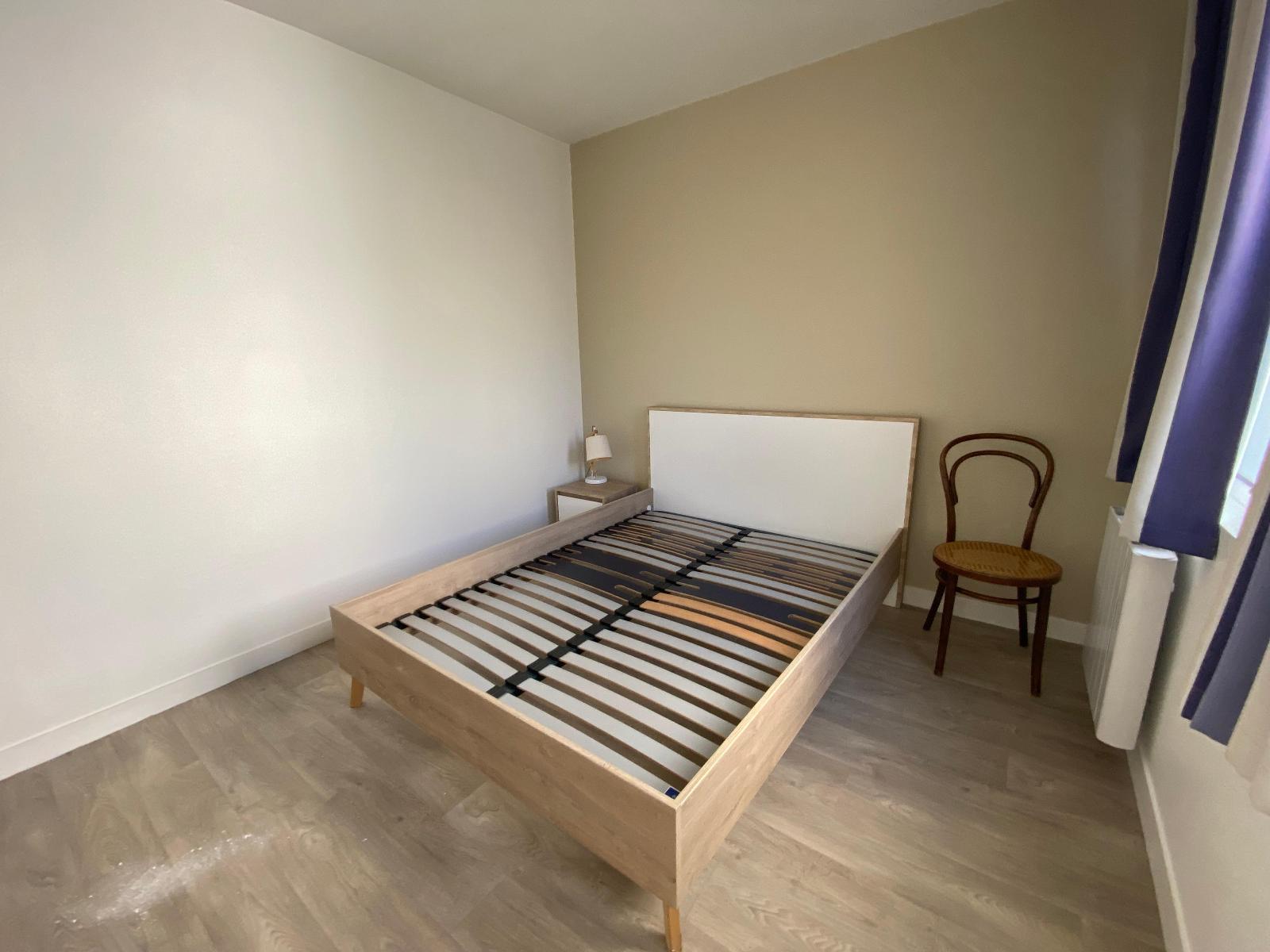(Meubles mis à disposition par les propriétaires : table de repas, chaises, un bureau, un sommier (sans matelas) : Bail de 3 ans avec préavis de départ de 3 mois).